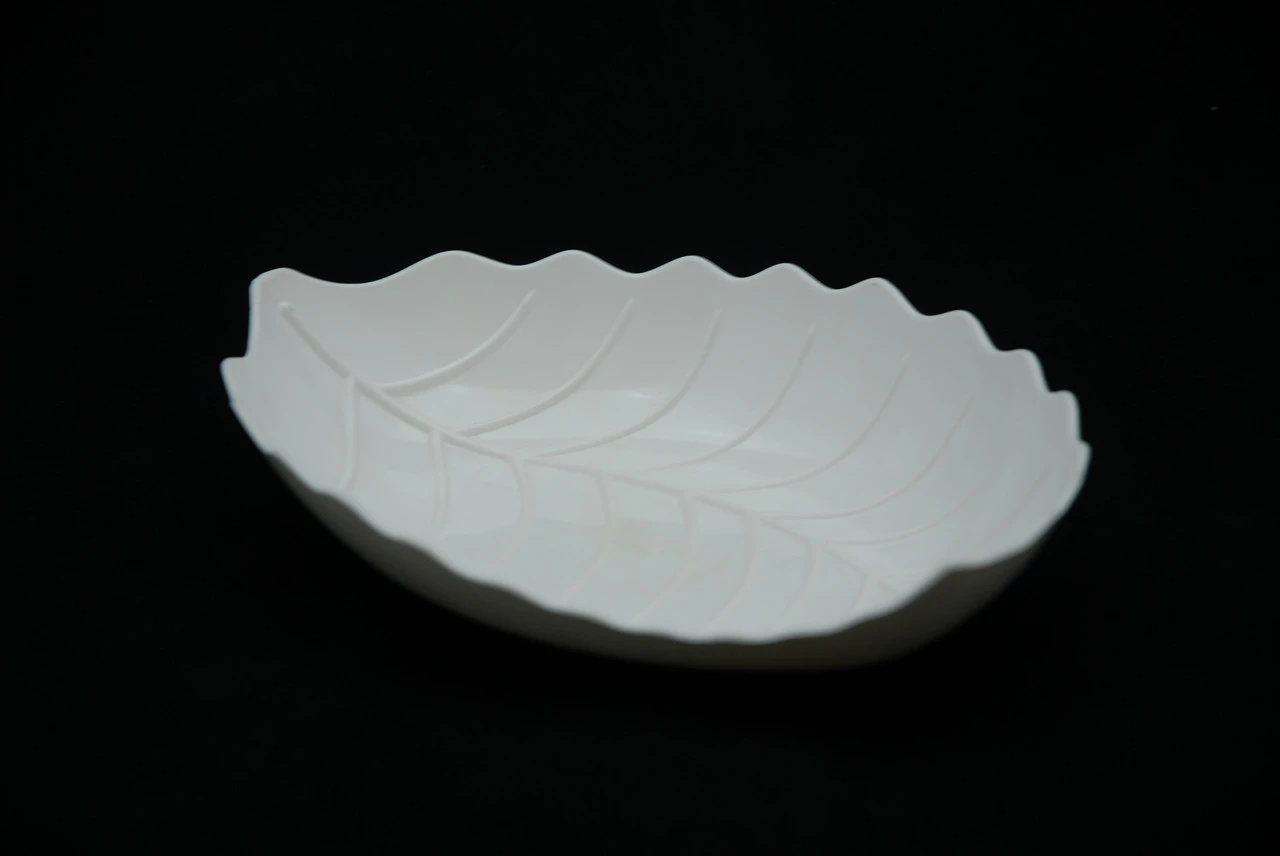 Пластмассовая фигурная тарелка "Листочек" 24см х 17см (белый цвет)