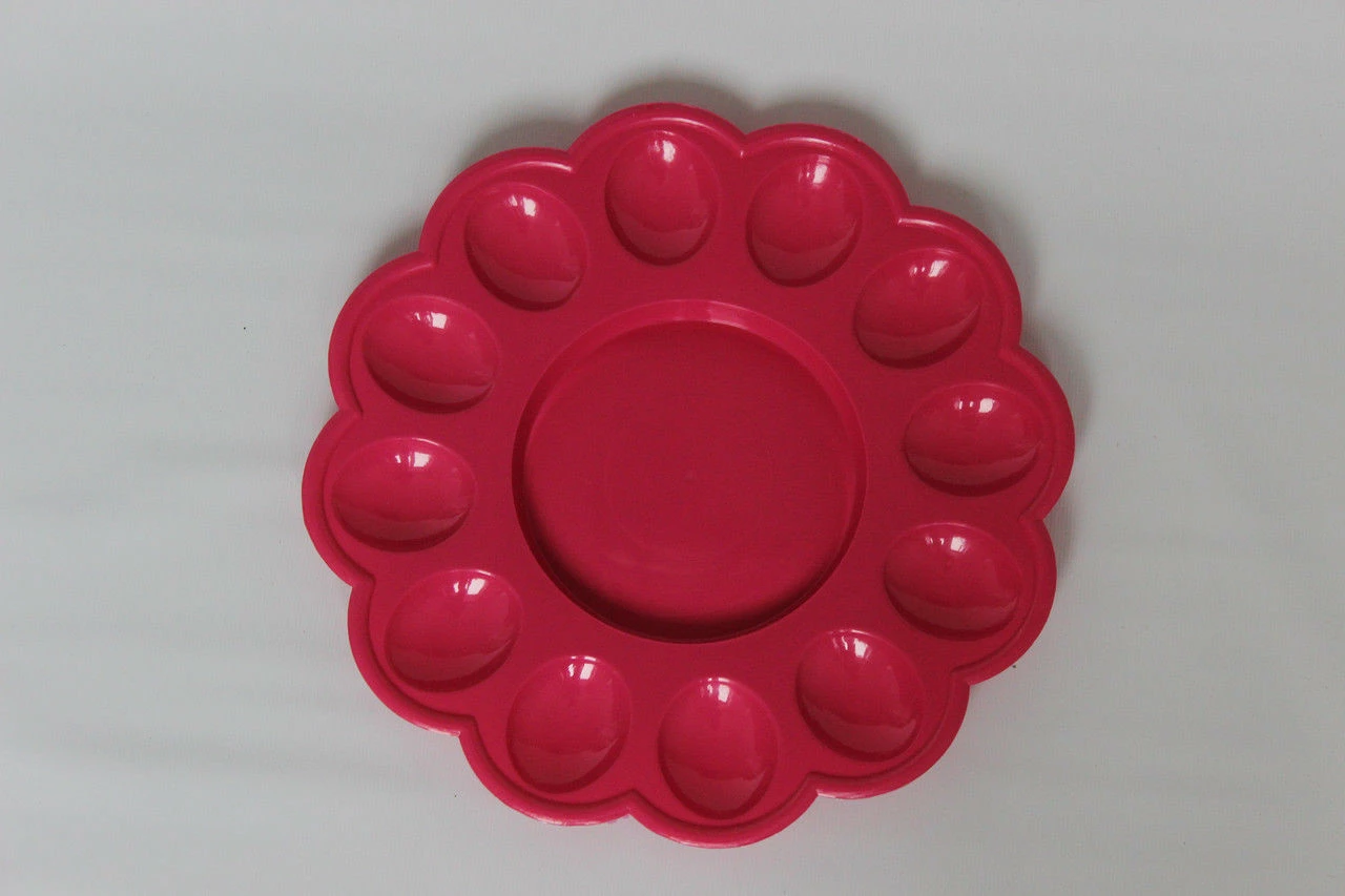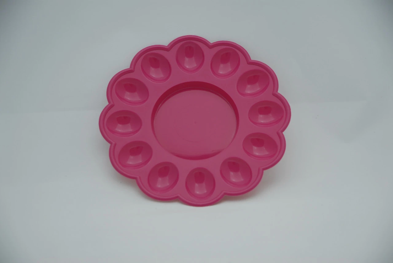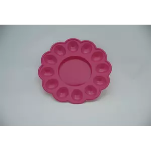 Пасхальная пластмассовая фигурная тарелка-подставка на 12 яиц и праздничный кулич Ø24 см (малиновый цвет)