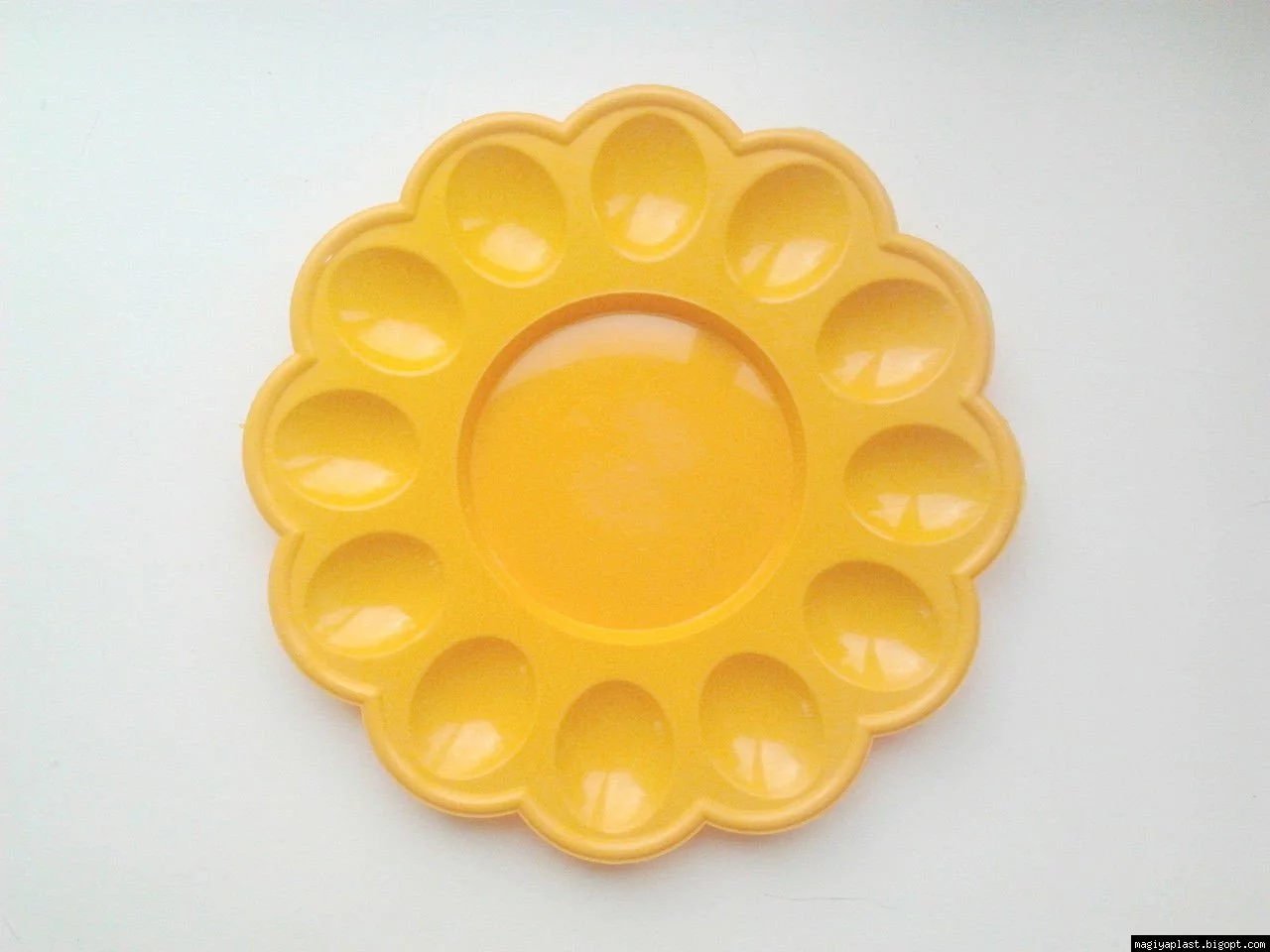 Гладкая поверхность пластмассовой фигурной тарелки-подставки на 12 яиц и праздничный кулич позволит легко ухаживать за изделием. На дне изделия есть маркировка с данными о материале изготовления изделия и прочими свойствами. Мытьё в посудомоечной машине рекомендовано в щадящем режиме. Использование в микроволновой печи рекомендовано на малой и средней мощностях в течении не более 1-3 минут.