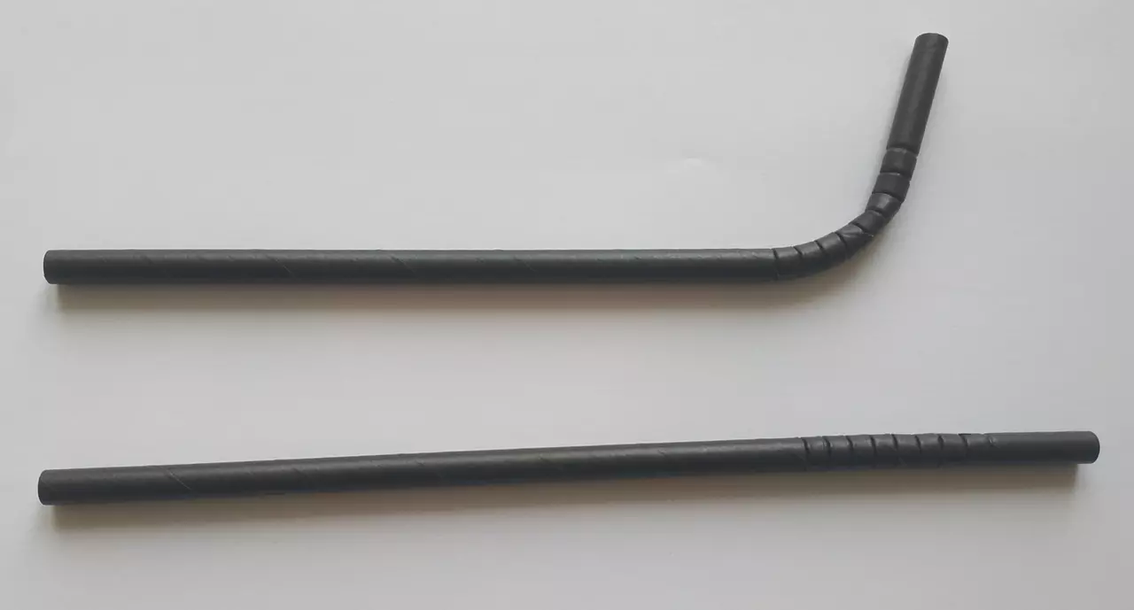 Одноразовая бумажная (картонная) трубочка с изгибом для напитков: L 195мм Ø 6мм, в упаковке (цвет чёрный)