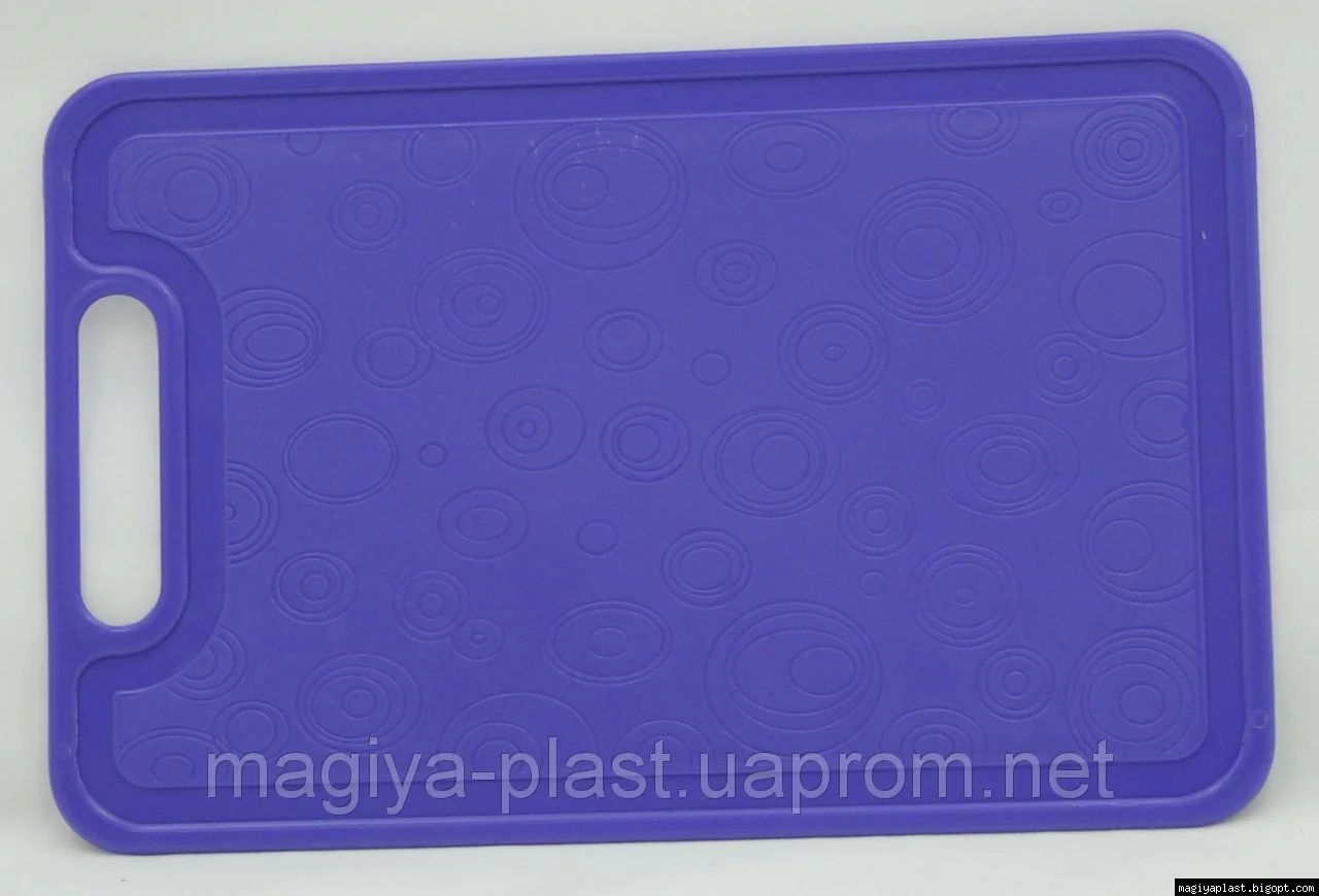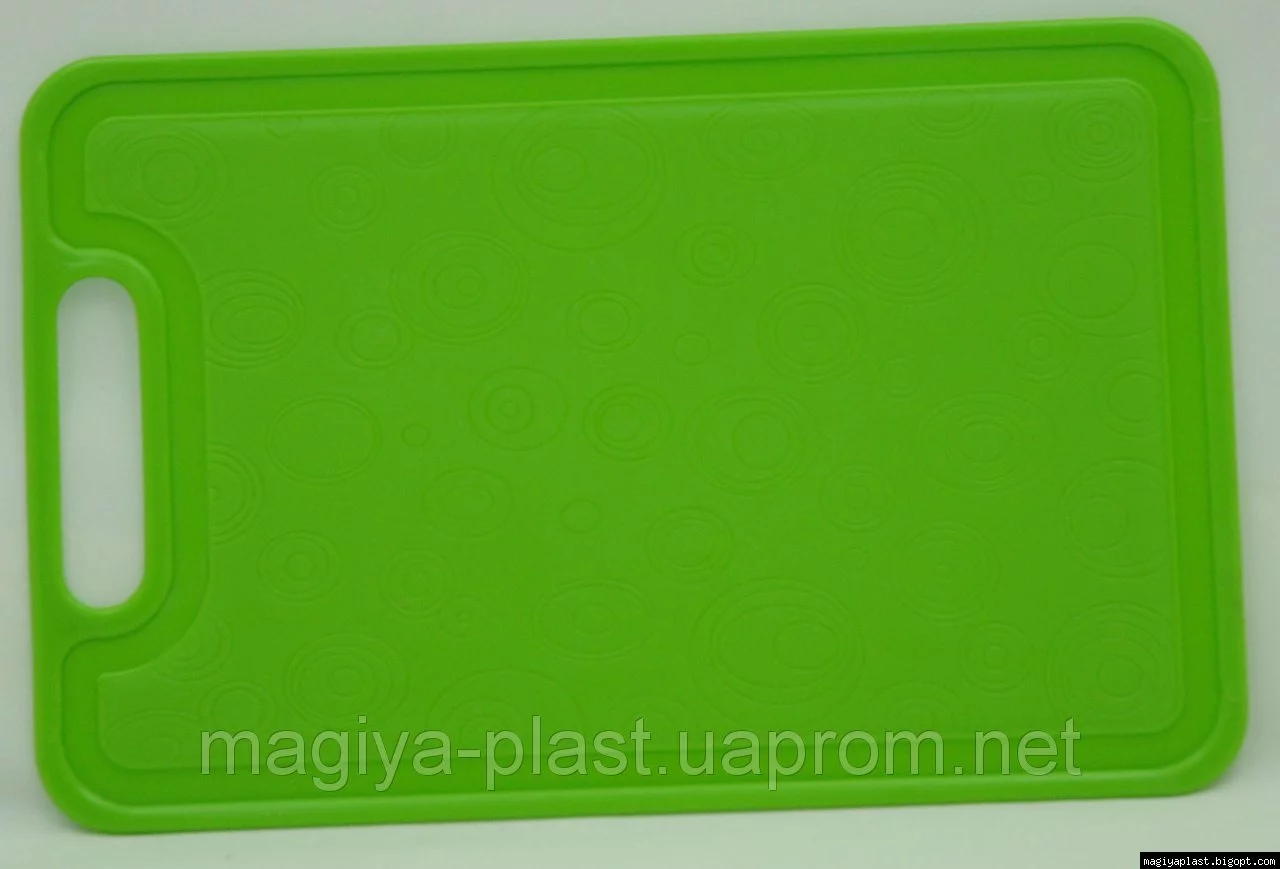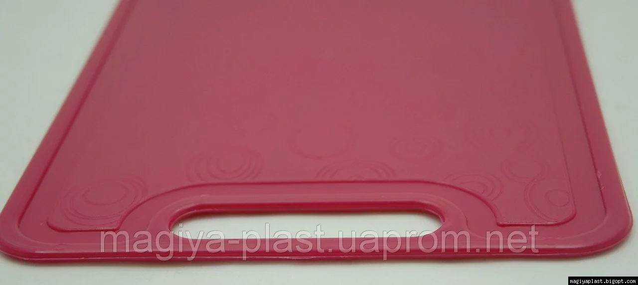 Пластиковая прямоугольная разделочная доска изготовлена из смеси на базе полипропилена, и предназначена для использования в качестве кухонной утвари во время приготовления множества блюд и полуфабрикатов: теста, салатов, разного рода нарезок, и прочего. Мытьё изделия в посудомоечной машине рекомендовано в щадящем режиме.