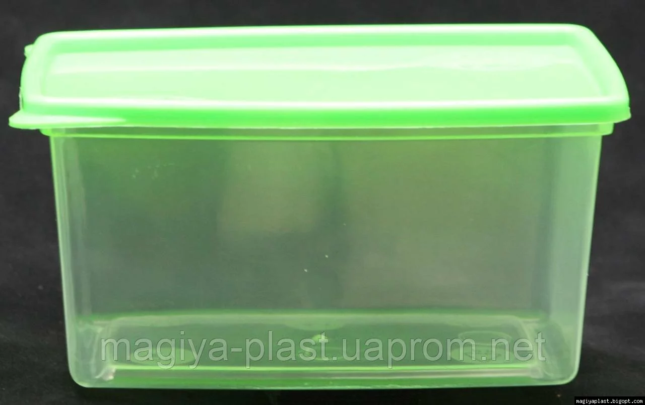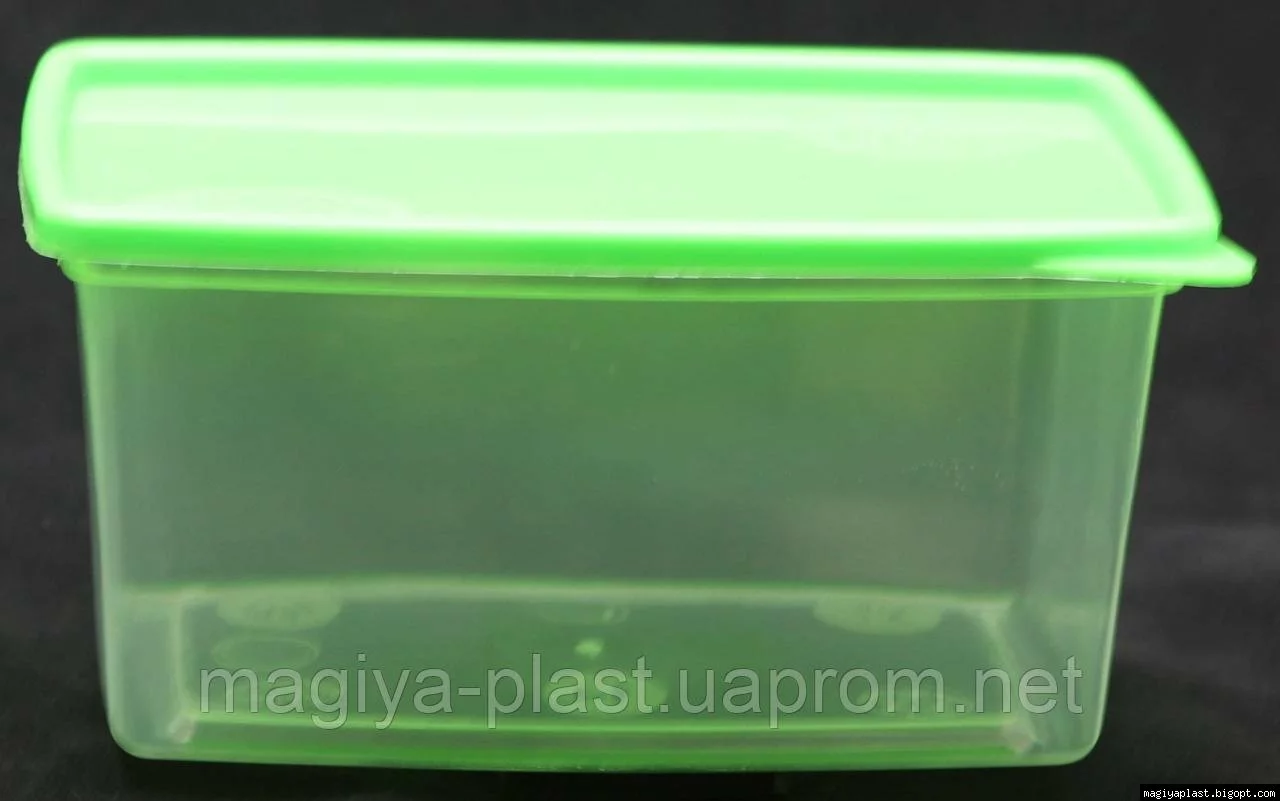 Пластиковый прямоугольный контейнер (лоток) 1.0л "Европейский" с жесткой крышкой (разные цвета крышки)
