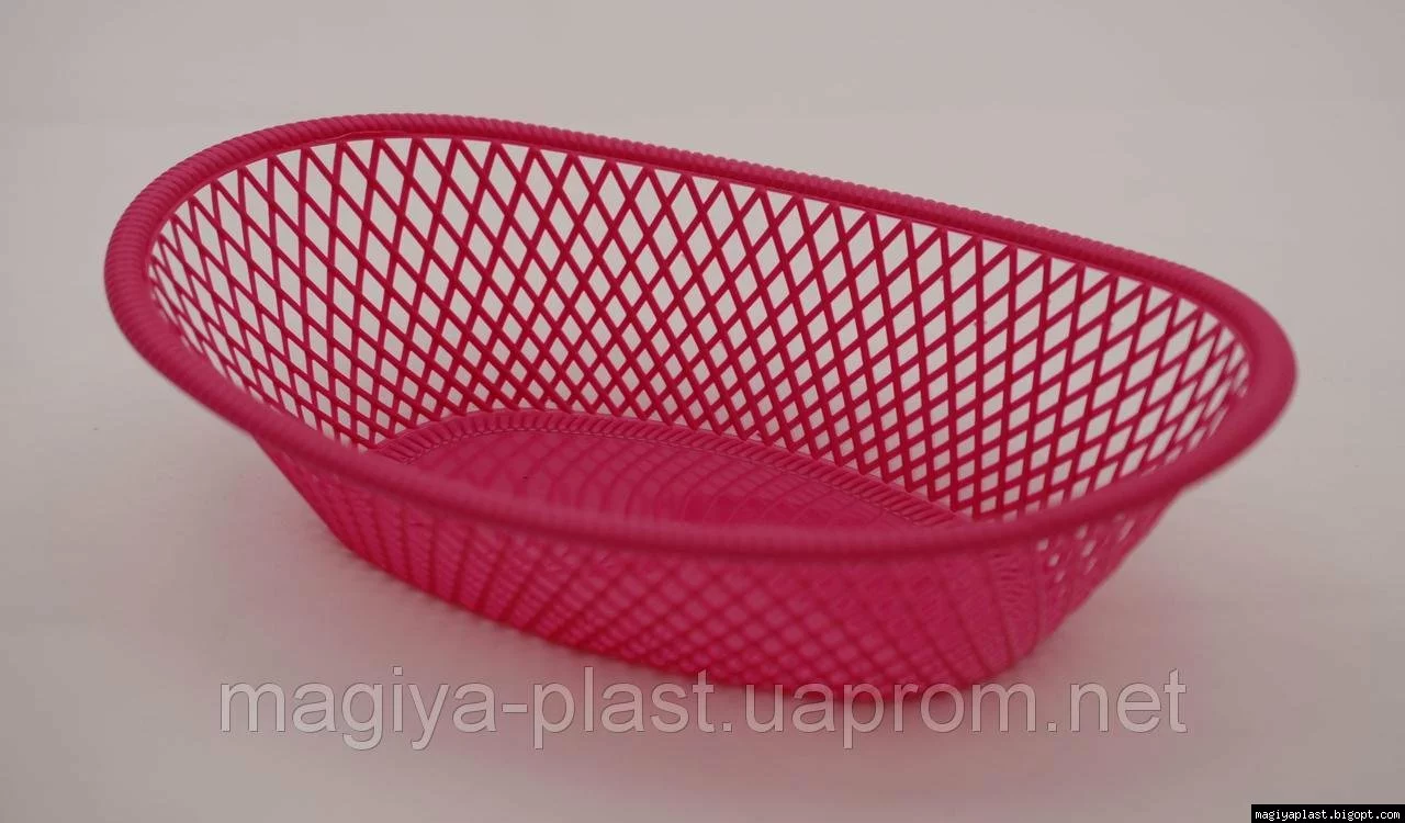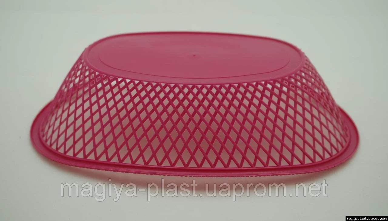 Пластиковая овальная корзинка для фруктов 27 см х 18 см (малинового цвета)