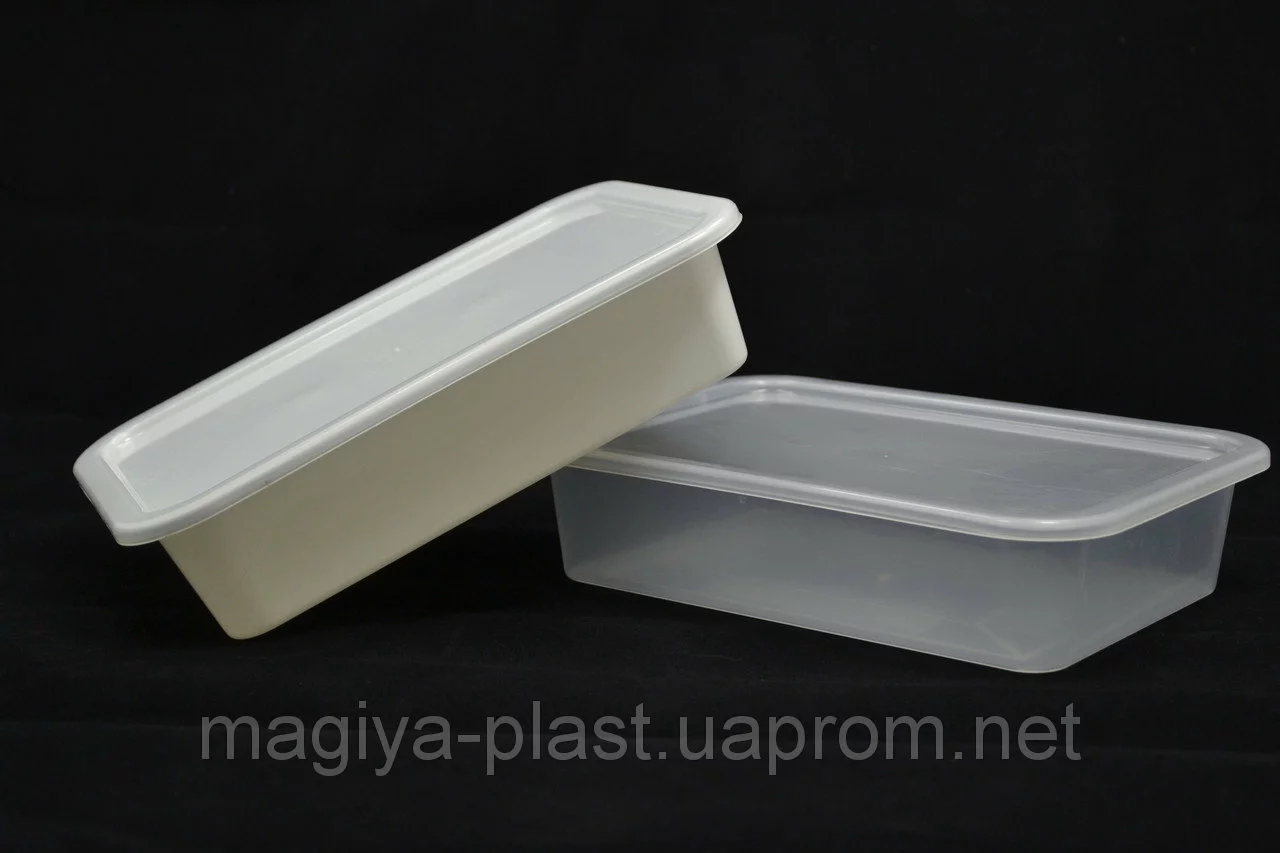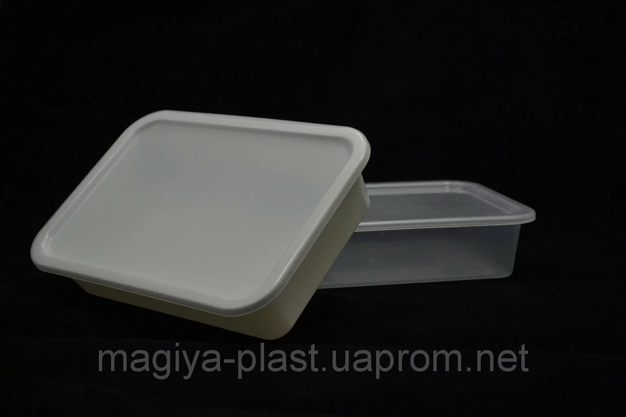 Пластиковый прямоугольный контейнер (лоток) "гастоемкость" 3.0 л с жесткой крышкой (натуральный цвет крышки)