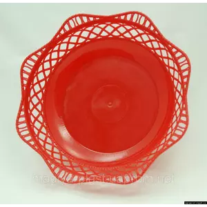 Пластмассовая ажурная круглая корзинка для хлеба Ø25 см (красный цвет)