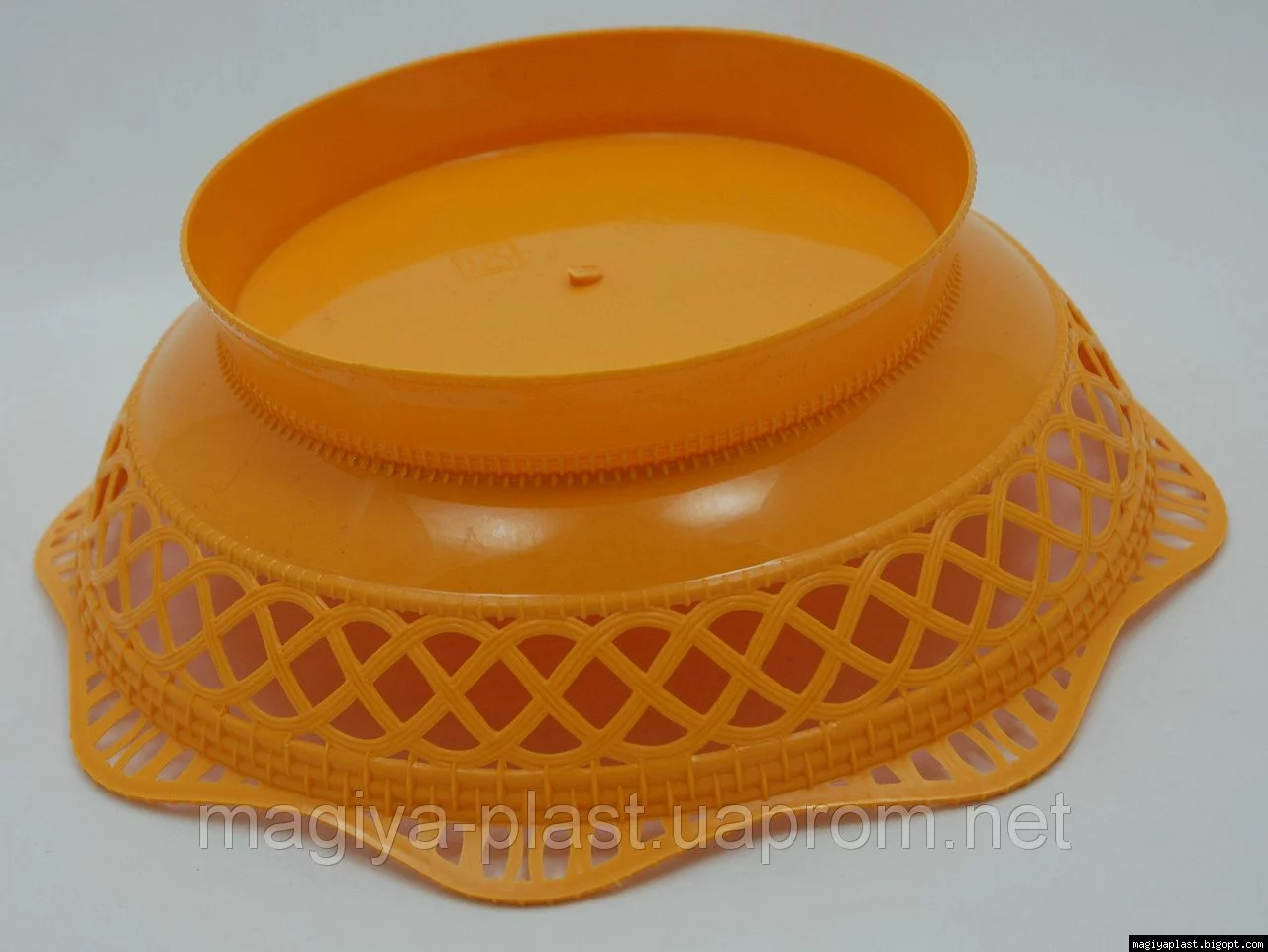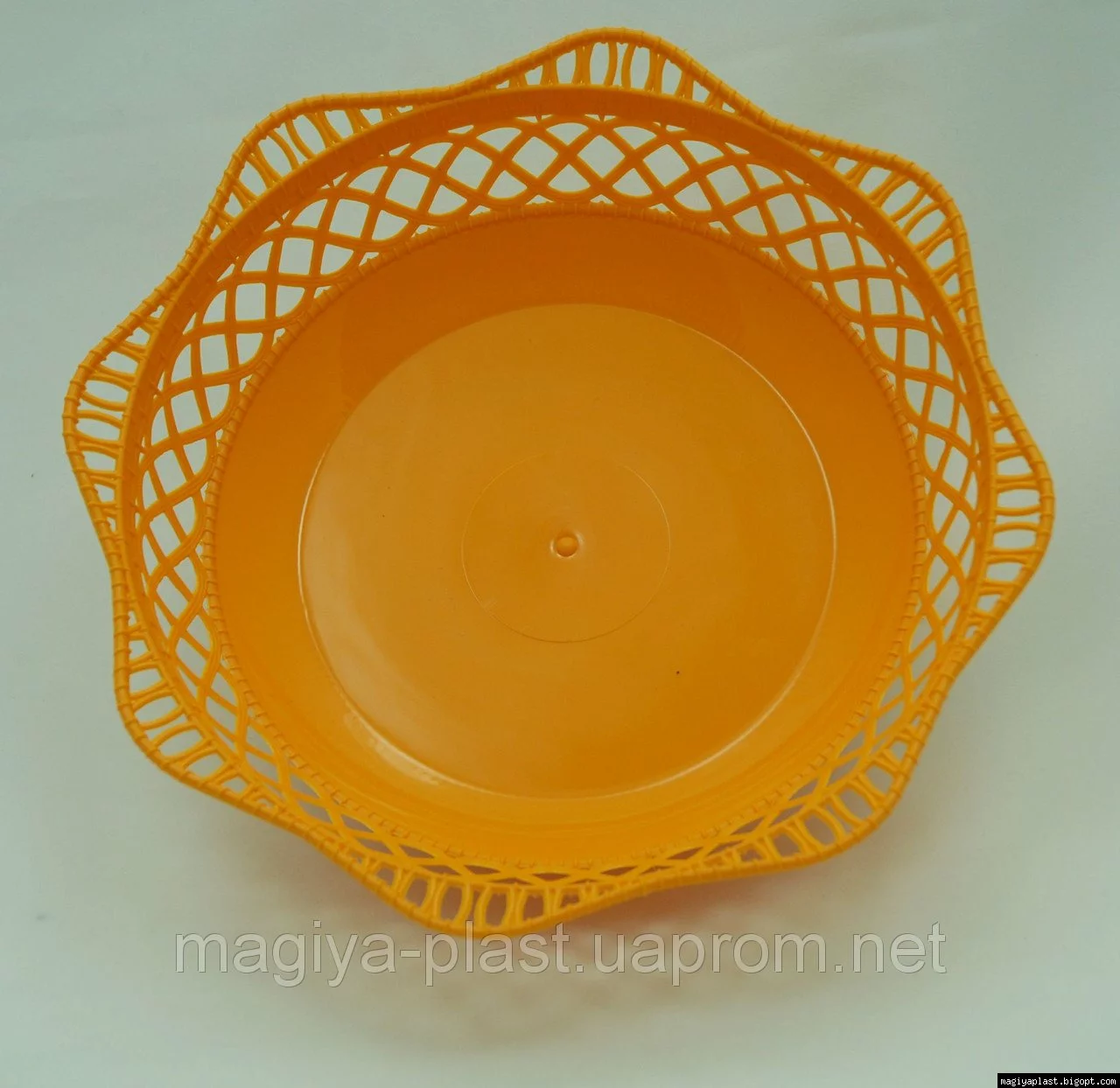 Пластмассовая ажурная круглая корзинка для хлеба Ø25 см (оранжевый цвет)