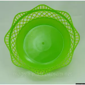 Пластмассовая ажурная круглая корзинка для хлеба изготовлена из смеси на базе полипропилена, и предназначена для использования в домашнем хозяйстве в качестве кухонной утвари. Благодаря стильному дизайну, изделие подходит для подачи на стол, либо непродолжительного хранения печенья, сухариков, хлебобулочных изделий, орешков, фруктов, конфет. Пластмассовая ажурная круглая корзинка для хлеба вполне может стать отличным приобретением для дома, которое легко впишется в любой интерьер, а, так же, изделие удобно будет использовать, например, для сервировки стола на свежем воздухе, а гладкая внутренняя поверхность пластмассовой ажурной круглой корзинки для хлеба позволит легко ухаживать за изделием