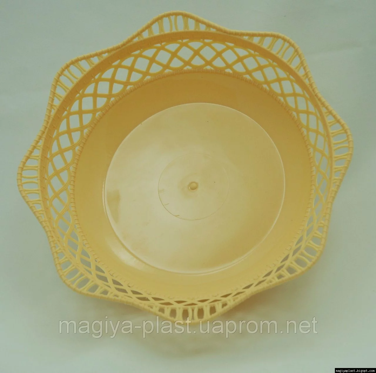 Пластмассовая ажурная круглая корзинка для хлеба Ø25 см (бежевый цвет)