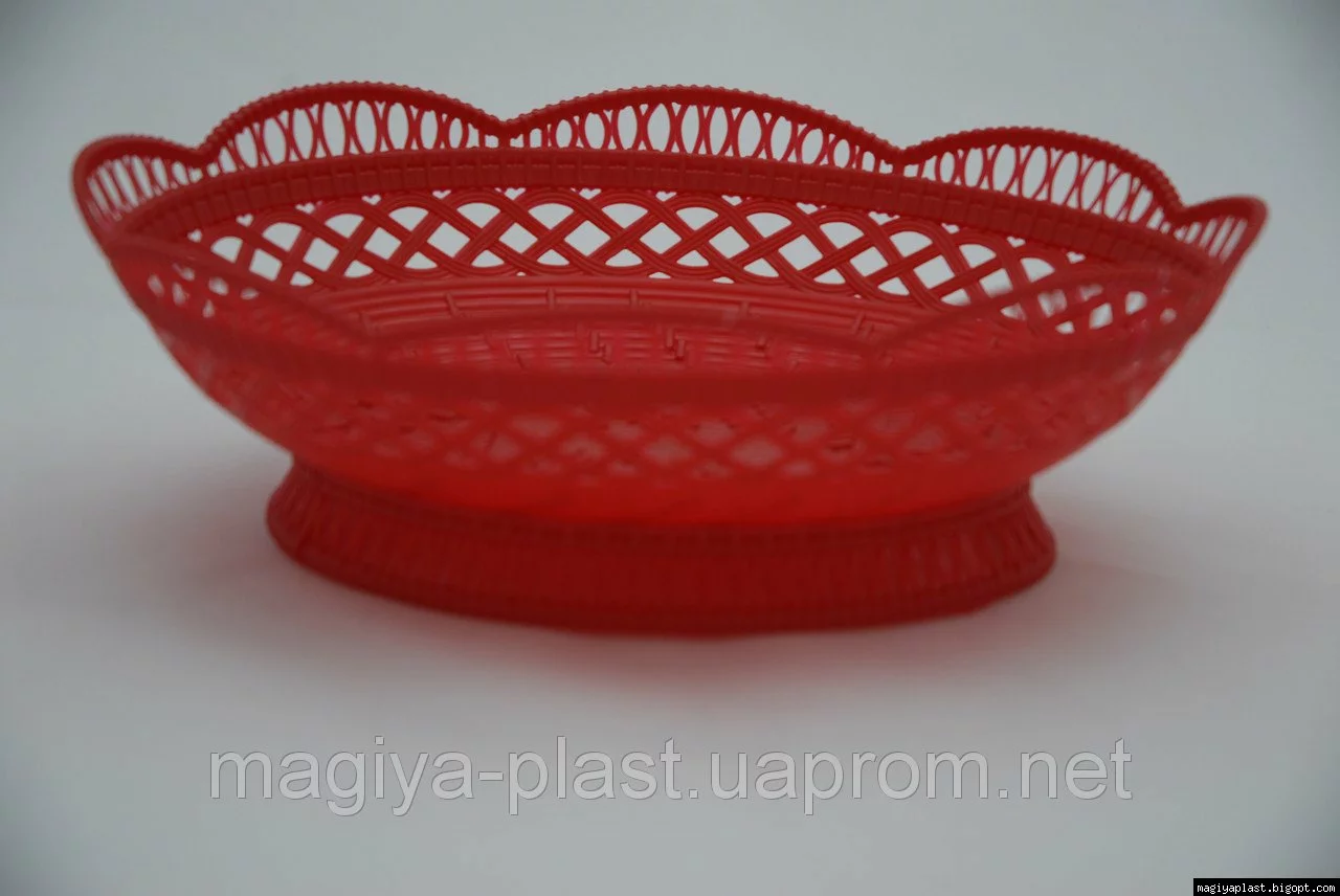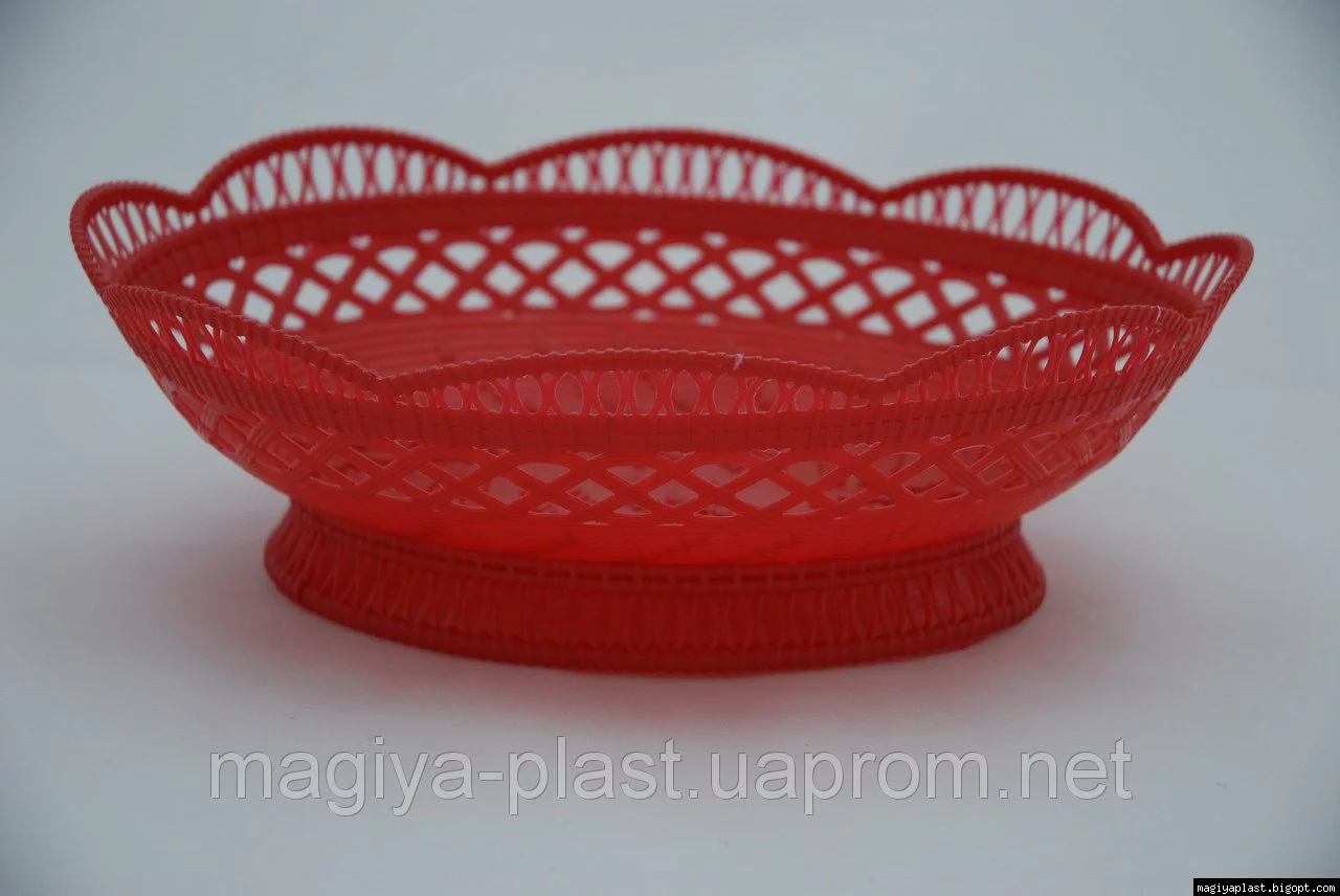 Пластмассовая ажурная овальная изготовлена из смеси на базе полипропилена, и предназначена для использования в домашнем хозяйстве в качестве кухонной утвари. Допускается использование в качестве кухонной утвари в организациях и учреждениях. Благодаря стильному дизайну, изделие подходит для подачи на стол, либо непродолжительного хранения фруктов, конфет, и . Пластмассовая ажурная овальная корзина для фруктов вполне может стать новым украшением любого интерьера, функциональным предметом домашнего обихода а также прекрасным подарком.
