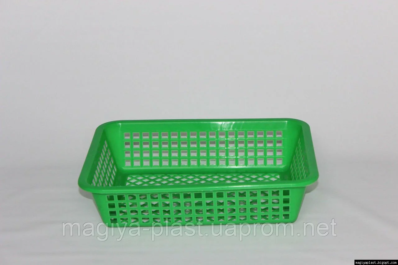 Пластмассовая прямоугольная корзина для фруктов изготовлена из смеси на базе полипропилена, и предназначена для использования в домашнем хозяйстве в качестве кухонной утвари. Благодаря классическому дизайну, изделие подходит для подачи на стол, либо непродолжительного хранения фруктов, конфет, и хлебобулочных изделий. Пластмассовая прямоугольная корзина для фруктов вполне может стать украшением любого интерьера, функциональным предметом домашнего обихода а также прекрасным подарком.