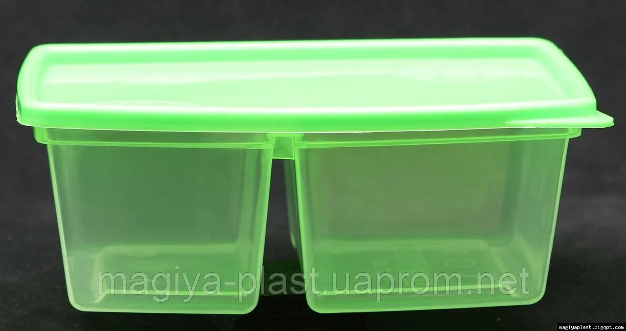 Пластиковый прямоугольный двойной контейнер (лоток) 0.7л "Европейский" с жесткой крышкой предназначен для использования в качестве кухонной утвари, как вспомогательное средство при хранении, транспортировке, и приготовлении разнообразной еды и полуфабрикатов. Крышка прилегает к контейнеру (лотку) плотно, но не герметично, и, благодаря дизайну, легко удобно открывается, и изделие является очень практичной вещью благодаря специальному дизайну. Гладкая поверхность пластикового прямоугольного двойного контейнера (лотка) 0.7л "Европейский" с жесткой крышкой позволит легко ухаживать за изделием.