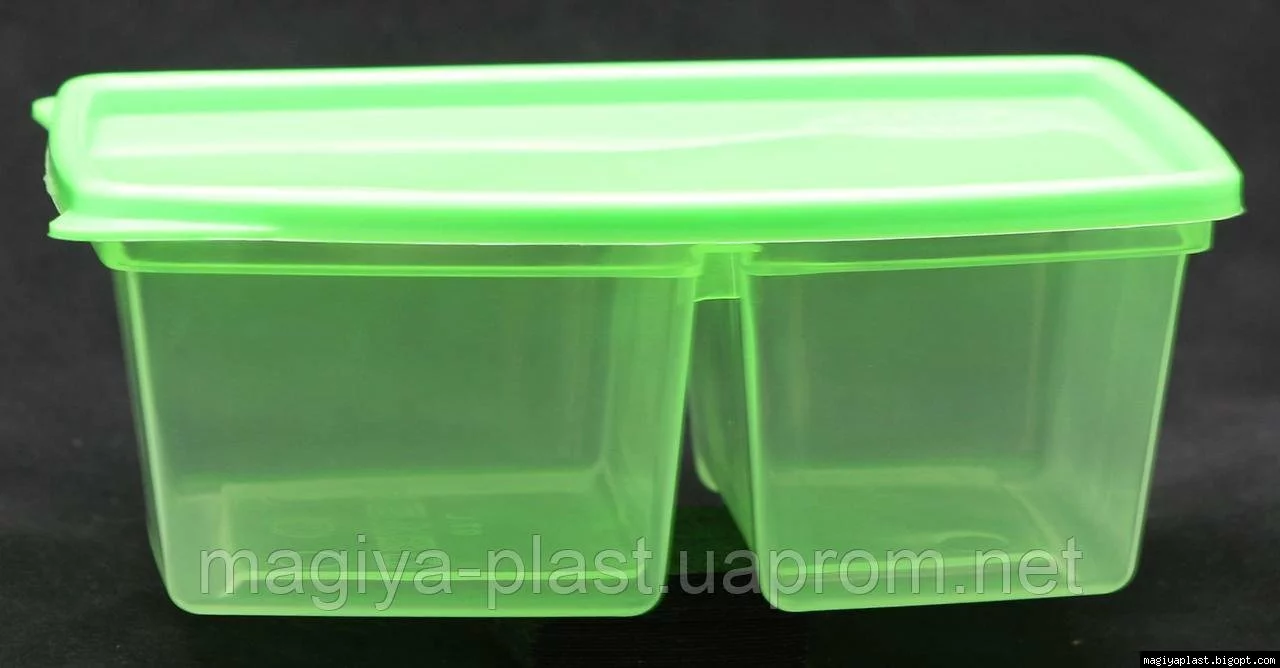 Пластиковый прямоугольный двойной контейнер (лоток) 0.7л "Европейский" с жесткой крышкой (разные цвета крышки)