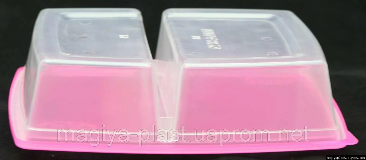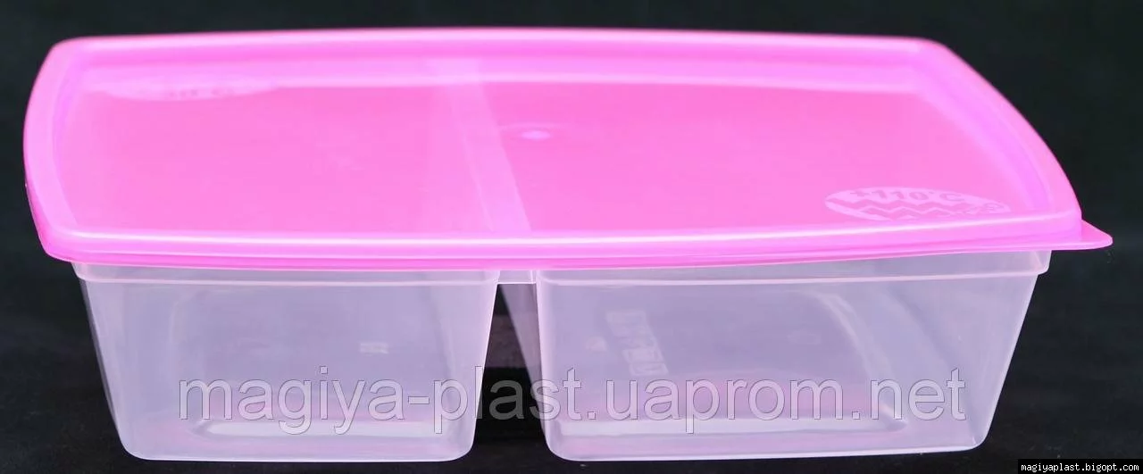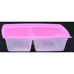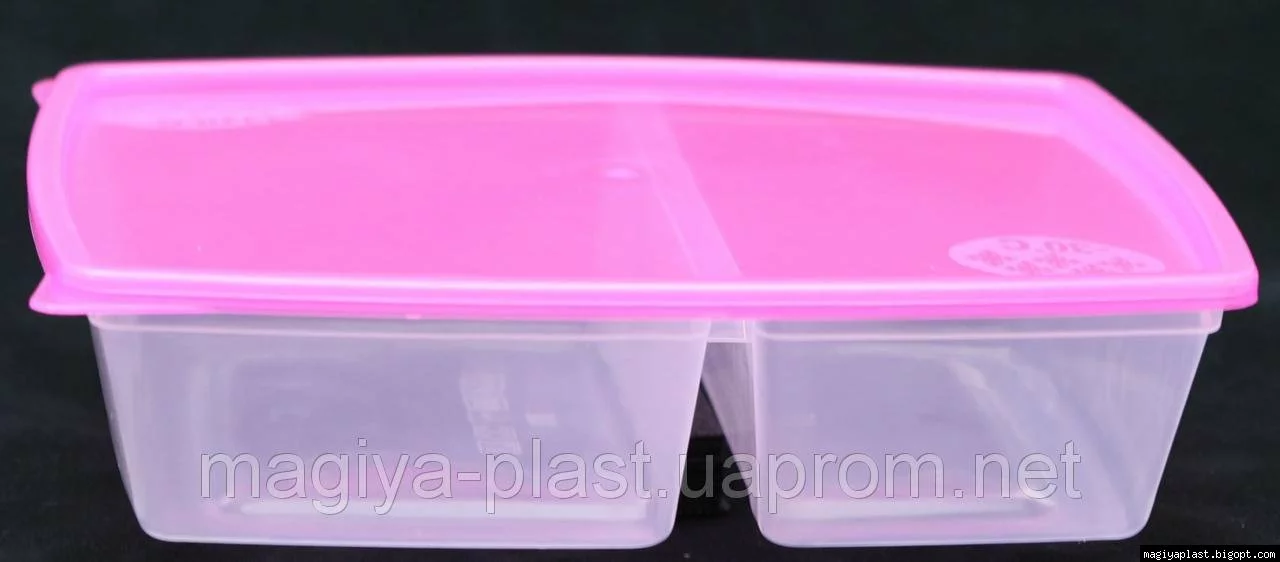 Европейский пищевой контейнер с двумя секциями- это идеальное решение для упаковки Ваших обедов и перекусов из нескольких блюд. На работу, в школу, на пикник- эта вещь Вам безусловно пригодится. Наш контейнер изготовлен из высококачественного пищевого пластика. Две вместительные секции 0,8 и 0,5 л закрываются плотной крышкой. Подходит для разогрева в микроволновой печи не снимая крышки, а только приоткрыв ее.