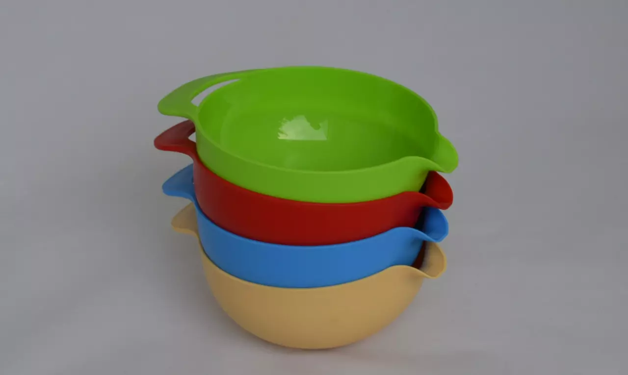 Пластмассовая 1.5л с удобной ручкой и носиком-сливом изготовлена из смеси на базе полипропилена, и предназначена для использования в домашнем хозяйстве в качестве кухонной утвари. Допускается использование в качестве кухонной утвари в организациях и учреждениях. За счёт эргономической формы изделие можно использовать как при смешивании венчиком, так и при взбивании миксером, а в ручке предусмотрено отверстие для крепления . Угол наклона ручки в пластмассовой миске для смешивания 1.5л подобран специально так, чтобы было максимально удобно переливать (или пересыпать) смешанные ингредиенты, а внутренняя гладкая поверхность позволит легко ухаживать за изделием.