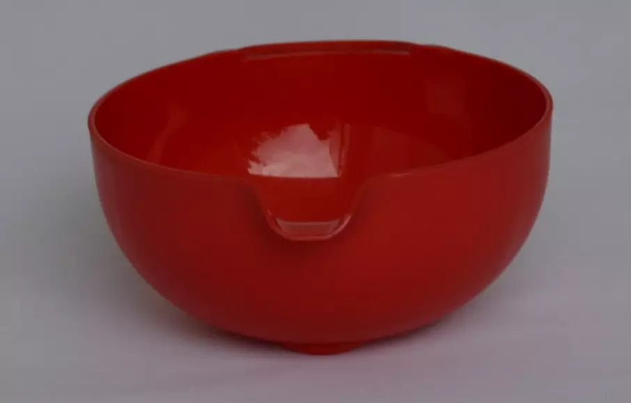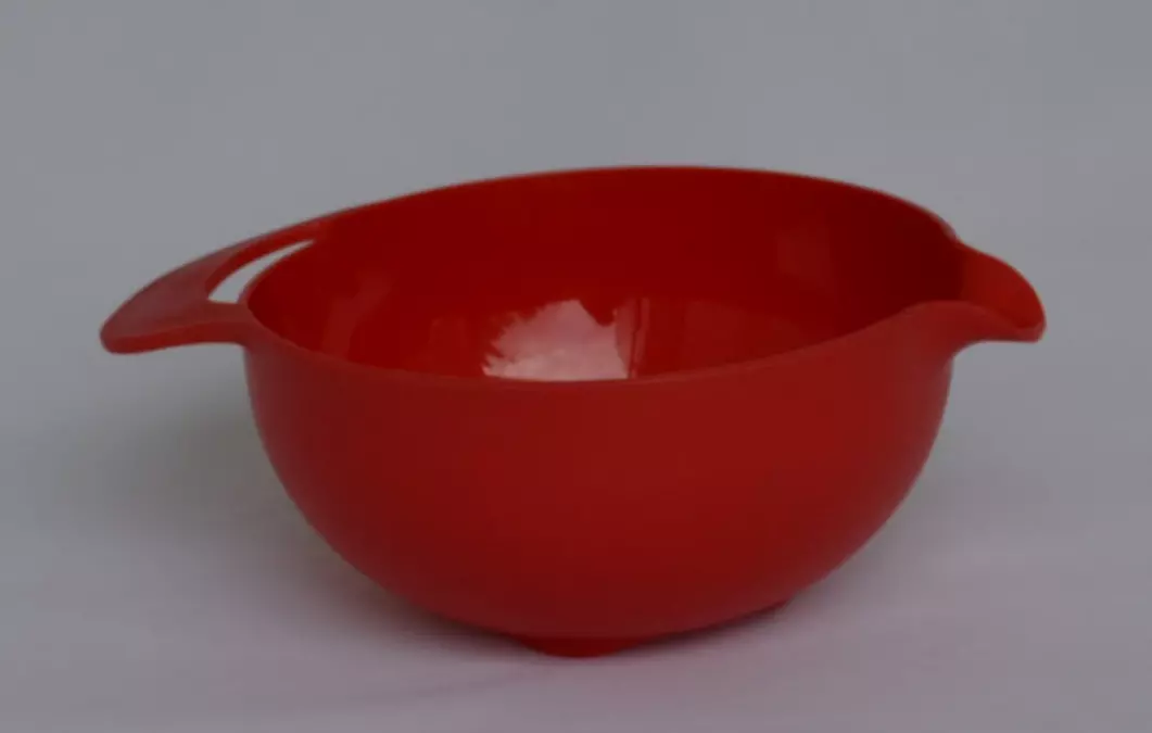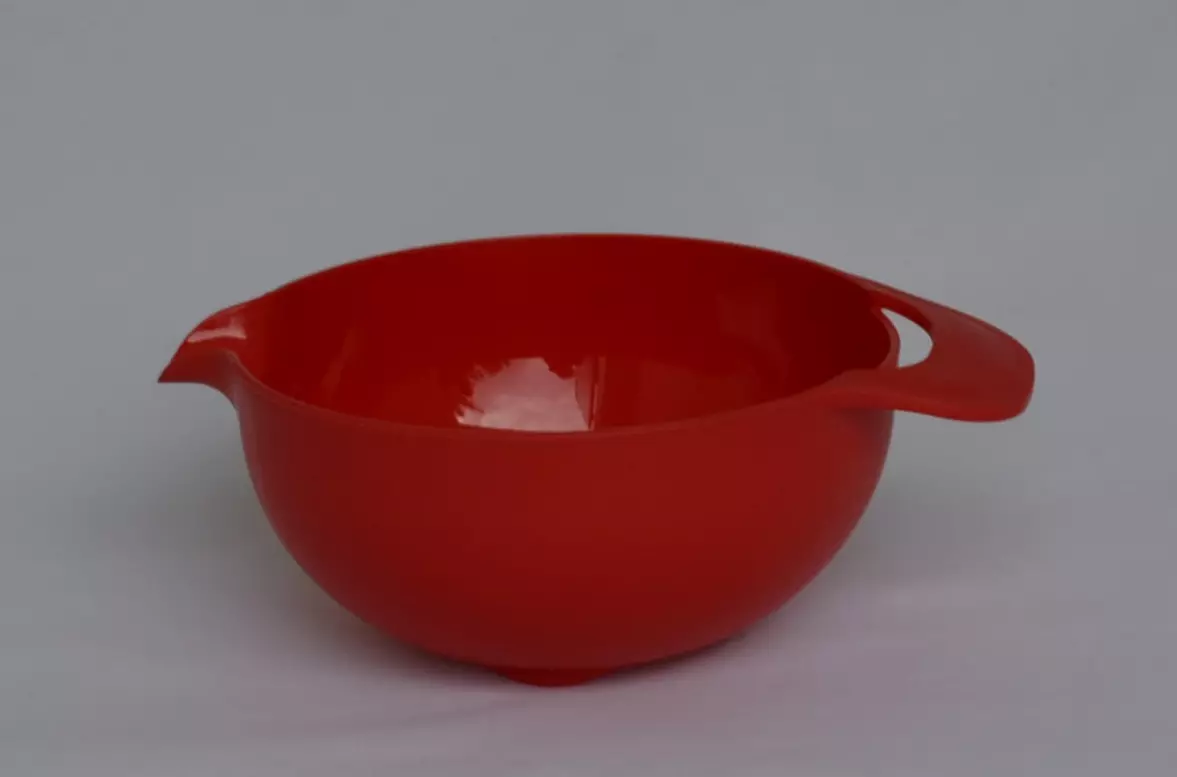 Пластмассовая миска для смешивания 1.5л с удобной ручкой и носиком-сливом (красный цвет)