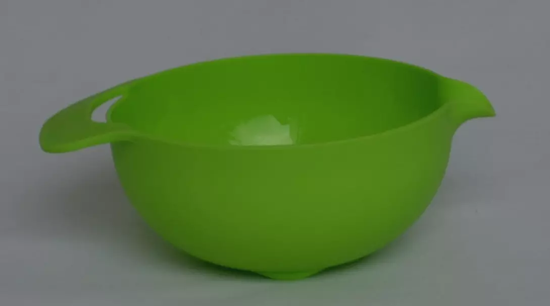 Пластмассовая 1.5л с удобной ручкой и носиком-сливом изготовлена из смеси на базе полипропилена, и предназначена для использования в домашнем хозяйстве в качестве кухонной утвари. Допускается использование в качестве кухонной утвари в организациях и учреждениях. За счёт эргономической формы изделие можно использовать как при смешивании венчиком, так и при взбивании миксером, а в ручке предусмотрено отверстие для крепления . Угол наклона ручки в пластмассовой миске для смешивания 1.5л подобран специально так, чтобы было максимально удобно переливать (или пересыпать) смешанные ингредиенты, а внутренняя гладкая поверхность позволит легко ухаживать за изделием.