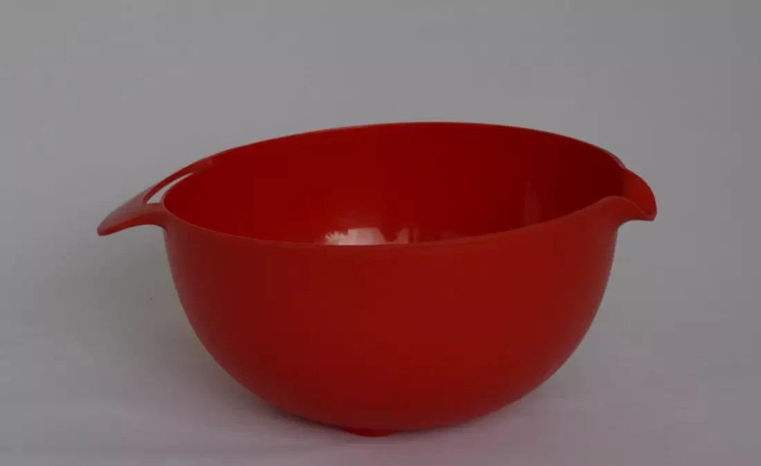 Пластмассовая миска для смешивания 4.0л с удобной ручкой и носиком-сливом (красный цвет)