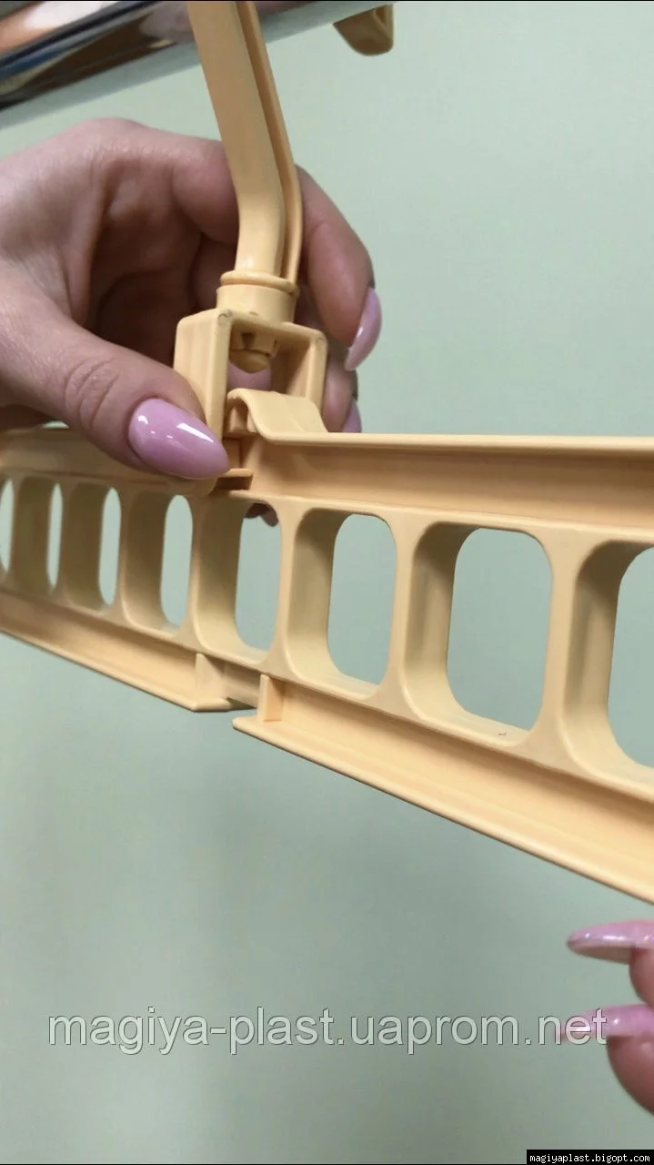 Вешалка изготовлена из высококачественного полипропилена (первичное сырьё). Корпус вешалки состоит из девяти отверстий