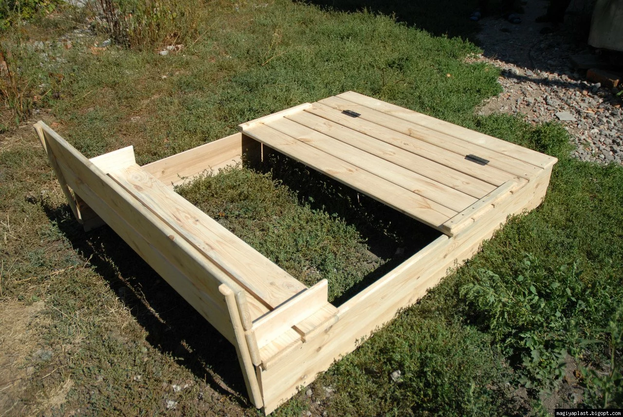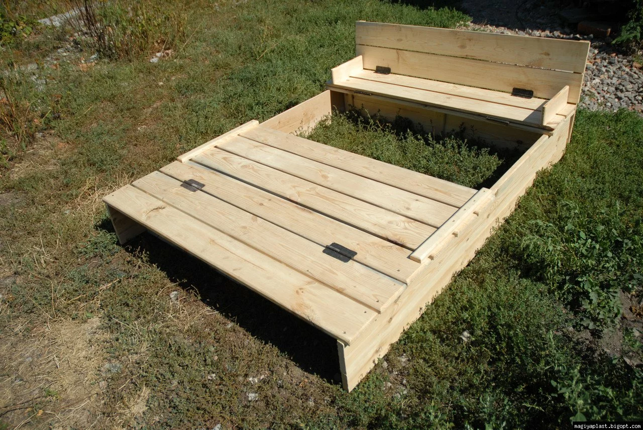Суперпесочница с крышкой, которая трансформируемтся в две замечательные лавочки.