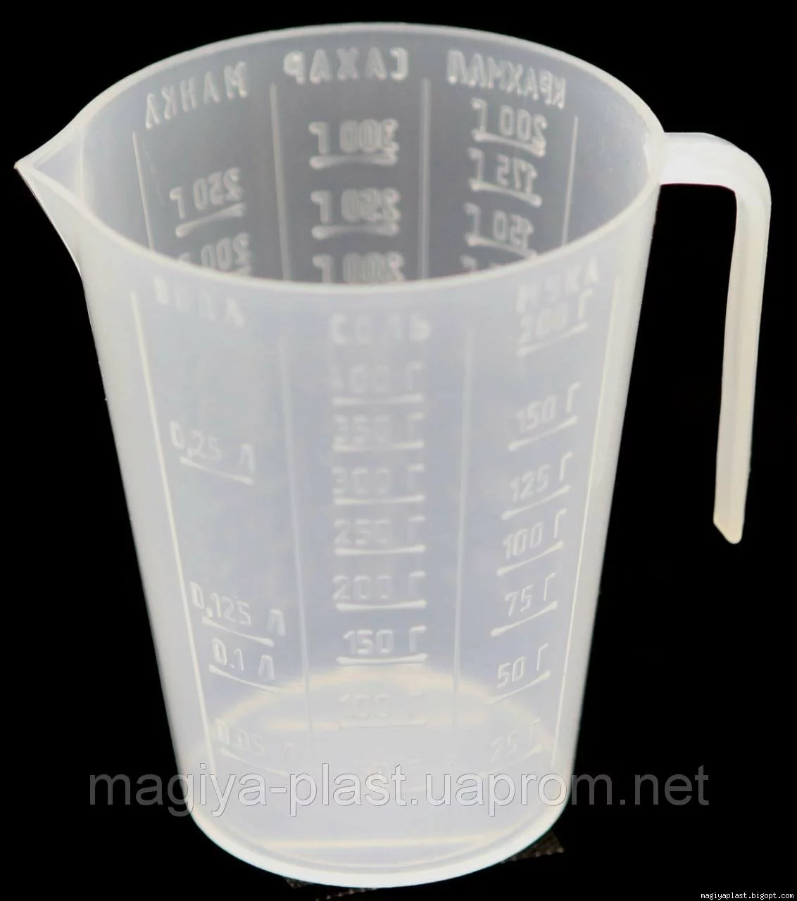 полистирольный 250мл с ручкой изготовлен из полипропилена, и предназначен для использования в домашнем хозяйстве в качестве кухонной утвари. Допускается использование в качестве кухонной утвари в организациях и учреждениях. Не является профессиональным измерительным прибором. Мерные шкалы вылиты с наружной стороны изделия, а внутренняя гладкая поверхность позволит легко ухаживать за изделием. С помощью мерного стакана полистирольного 250мл можно быстро и удобно отмерить необходимое количество сыпучих: крахмала, сахара, манки, и муки, а, так же, отмерять необходимое количество прохладной жидкости. Благодаря материалу изготовления изделие является немного более прозрачным, чем .