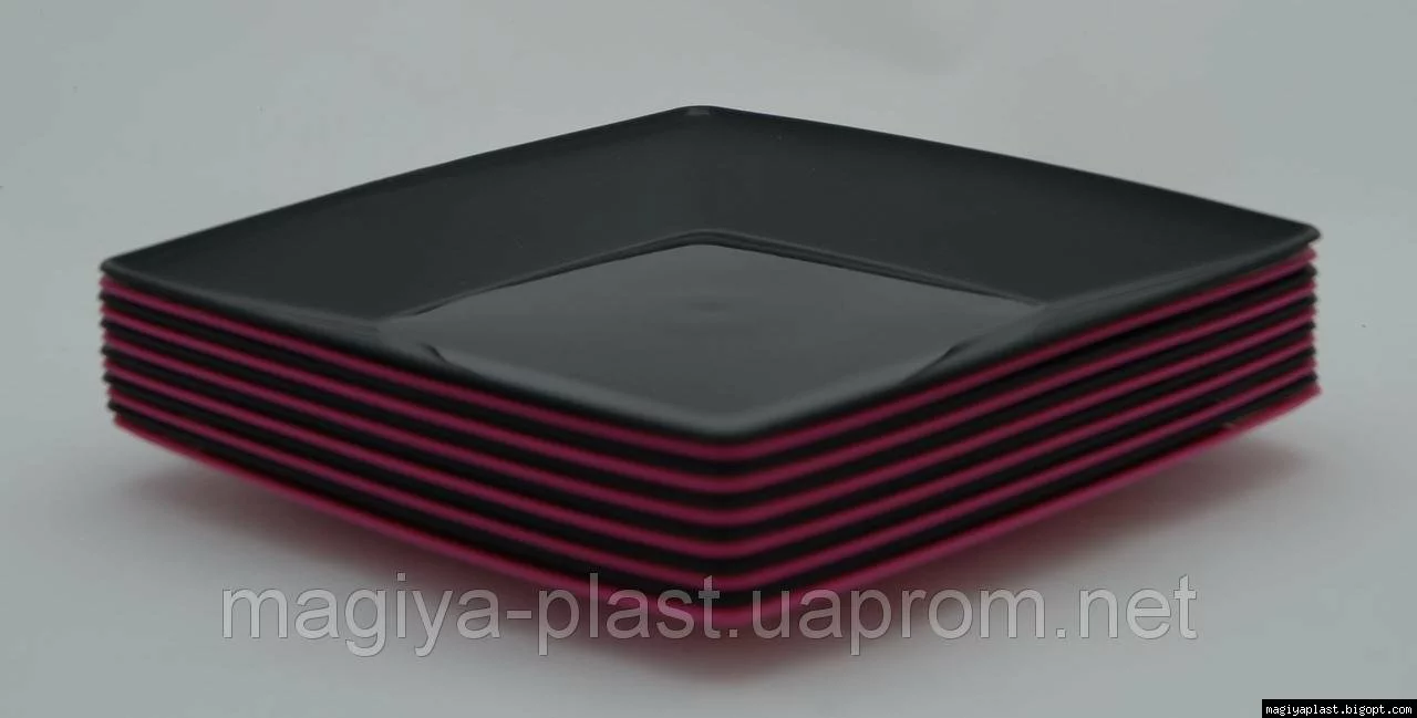 Пластмассовая квадратная закусочная (салатная) тарелка 18см х 18см (черный цвет)