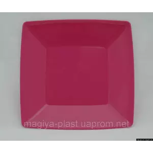 Пластмассовая квадратная закусочная (салатная) тарелка 18см х 18см (малиновый цвет)
