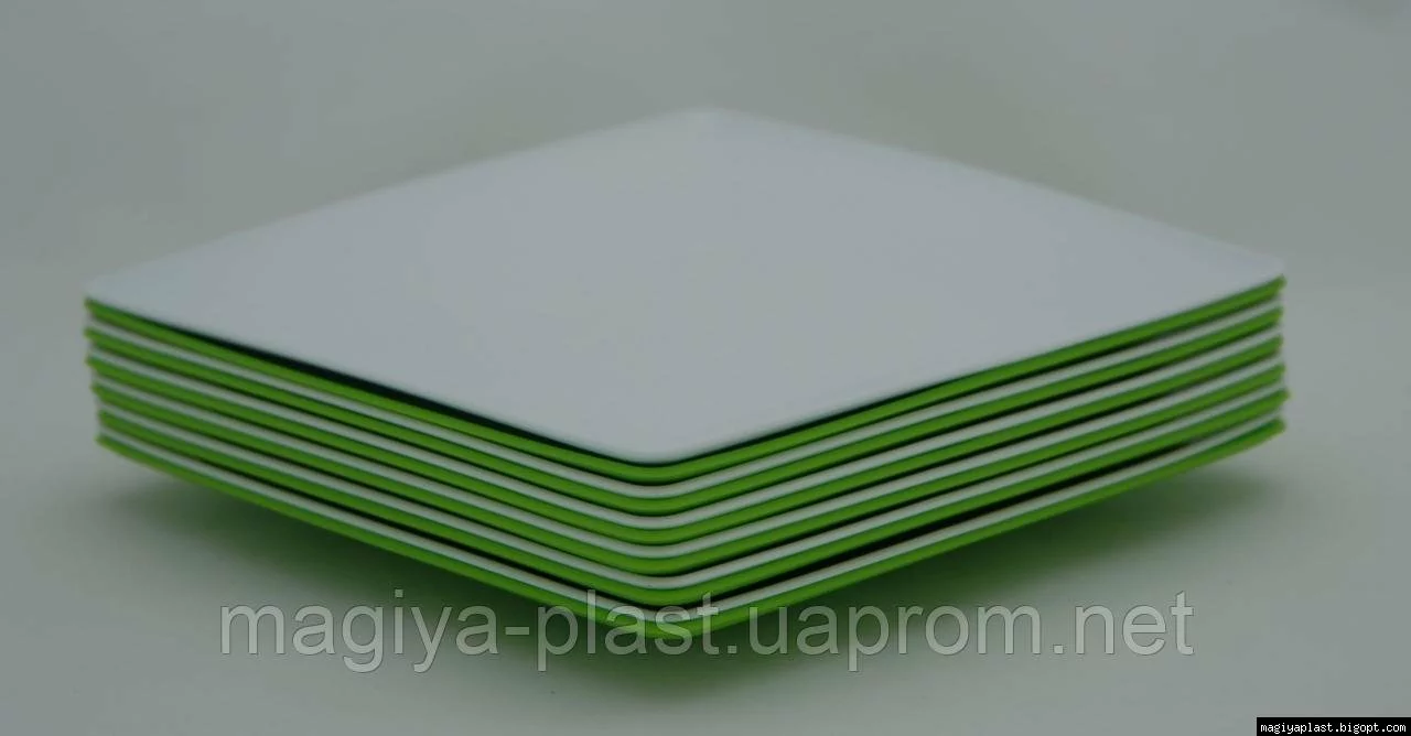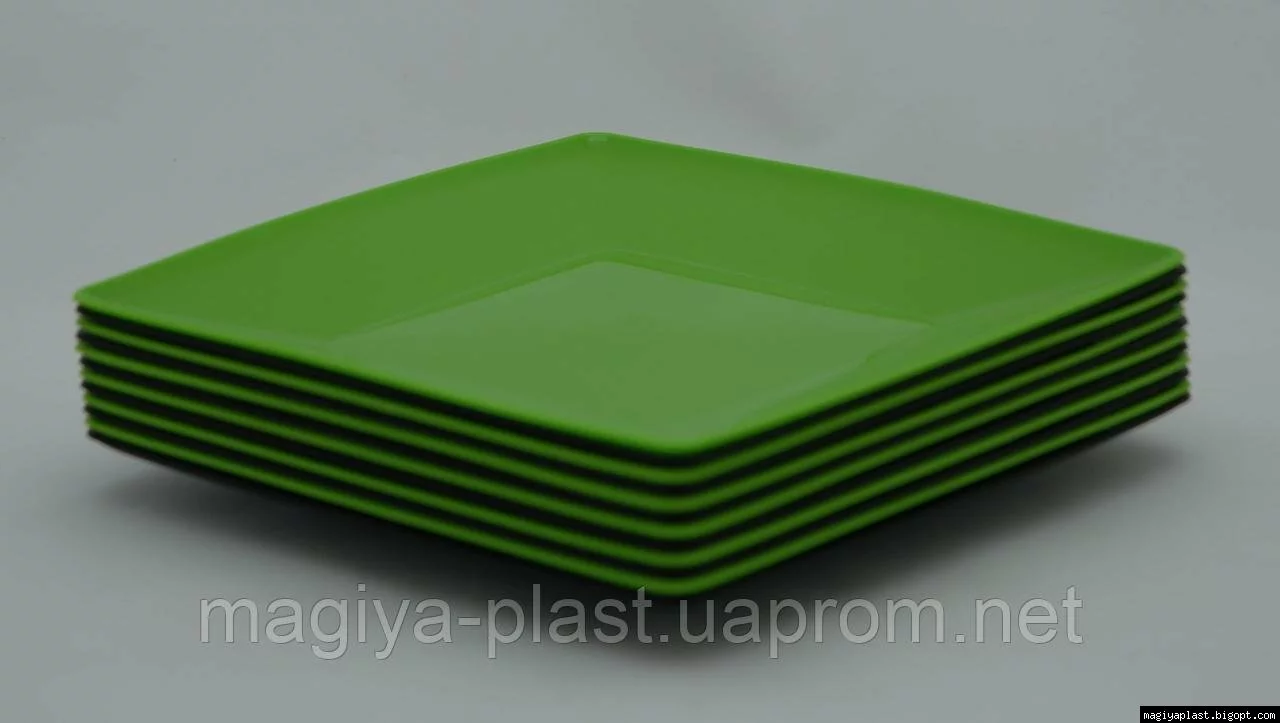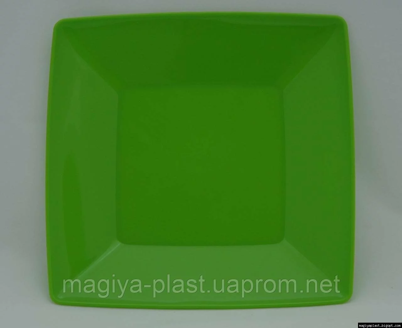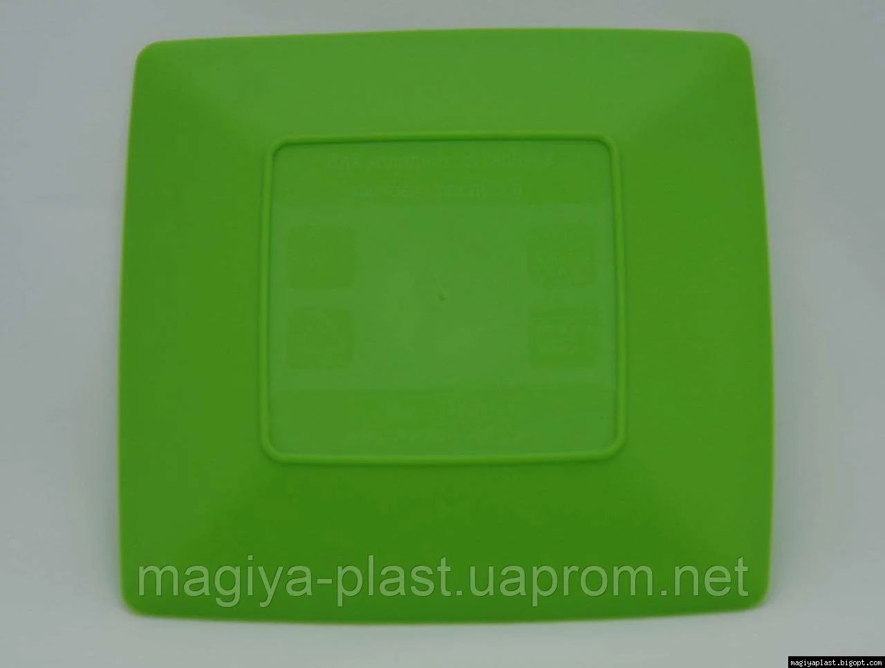 Пластмассовая квадратная закусочная (салатная) тарелка 18см х 18см (салатовый цвет)