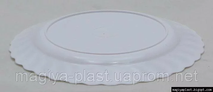 На дне пластмассовой круглой закусочной (салатной) тарелки "косичка" Ø17 см есть маркировка о материале изготовления изделия и другими свойствами. Мытьё в посудомоечной машине рекомендовано в щадящем режиме. Использование в микроволновой печи рекомендовано на малой либо средней мощностях в течении не более 1-3 минут. В морозильной камере рекомендовано использовать с осторожностью.