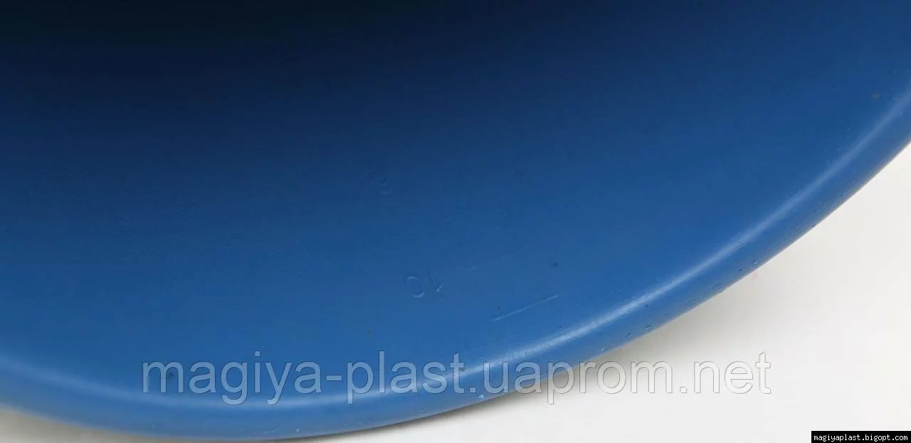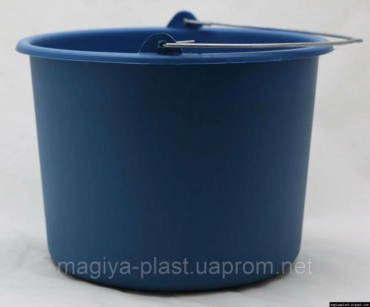 Круглое хозяйственное 12л изготовлено из смеси на базе переработанных полимеров: полипропилен и полиэтилен в разных пропорциях. Возможны примеси других полимеров. Некоторая степень эластичности корпуса круглого хозяйственного ведра 12л из переработанного пластика с мерной шкалой достигается благодаря присутствию полиэтилена в составе смеси переработанных полимеров, из которой изготавливается корпус изделия. Степень эластичности напрямую зависит, так же, от точного состава этой полимерной смеси, и может меняться как в рамках одной партии производства, так и от партии к партии в значительной степени. Ручка изделия изготовлена из оцинкованной проволоки 3,5мм..4,0мм, и имеет характерный носик посередине. Внутри круглого хозяйственного ведра 12л нанесена мерная шкала до 11 литров (номинальный объём 12л может быть достигнут, если заполнить изделие водой до краёв). Не является профессиональным измерительным прибором. На дне изделия с наружной стороны присутствуют небольшие дополнительные рёбра жесткости.