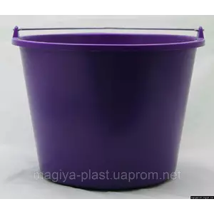 Круглое хозяйственное 14л изготовлено из смеси на базе переработанных полимеров: полипропилен и полиэтилен в разных пропорциях. Возможны примеси других полимеров. Некоторая степень эластичности корпуса круглого хозяйственного ведра 14л из переработанного пластика с мерной шкалой достигается благодаря присутствию полиэтилена в составе смеси переработанных полимеров, из которой изготавливается корпус изделия. Степень эластичности напрямую зависит, так же, от точного состава этой полимерной смеси, и может меняться как в рамках одной партии производства, так и от партии к партии в значительной степени. Ручка изделия изготовлена из оцинкованной проволоки 3,5мм..4,0мм, и имеет характерный носик посередине. Внутри круглого хозяйственного ведра 14л нанесена мерная шкала до 13 литров (номинальный объём 14л может быть достигнут, если заполнить изделие водой до краёв). Не является профессиональным измерительным прибором.На дне изделия с наружной стороны присутствуют небольшие дополнительные рёбра жесткости.