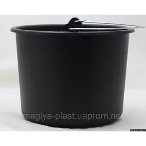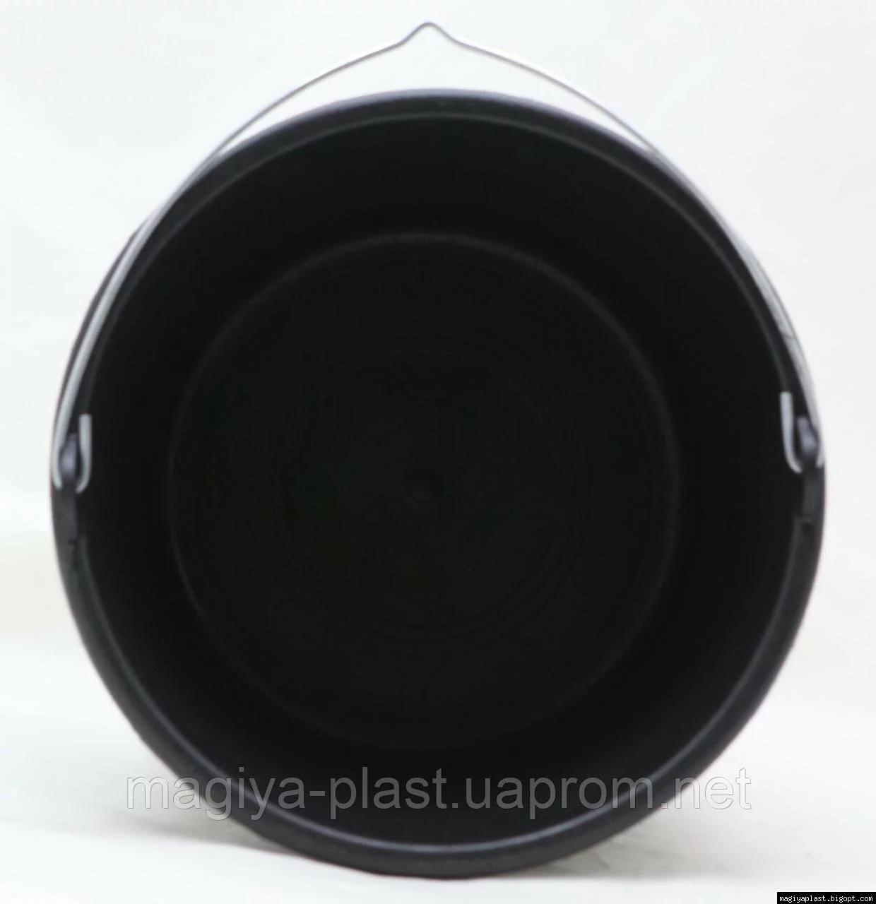 Круглое хозяйственное (строительное) ведро 12л из переработанного пластика с мерной шкалой (черный цвет)