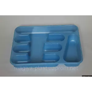 Пластмассовый прямоугольный лоток-вкладыш в шуфлядку для столовых приборов 33см х 26см "классик" изготовлен из смеси на базе полипропилена, и предназначен для использования в домашнем хозяйстве в качестве кухонной утвари, как вспомогательное средство для эргономичного хранения столовых приборов в шуфлядке. Столовые приборы рекомендовано укладывать в ниши пластикового лотка-вкладыша в шуфлядку, с учётом их дизайна, в стопки, не превышающие высоту ниш. Рекомендовано для хранения чистых сухих столовых приборов.
