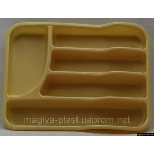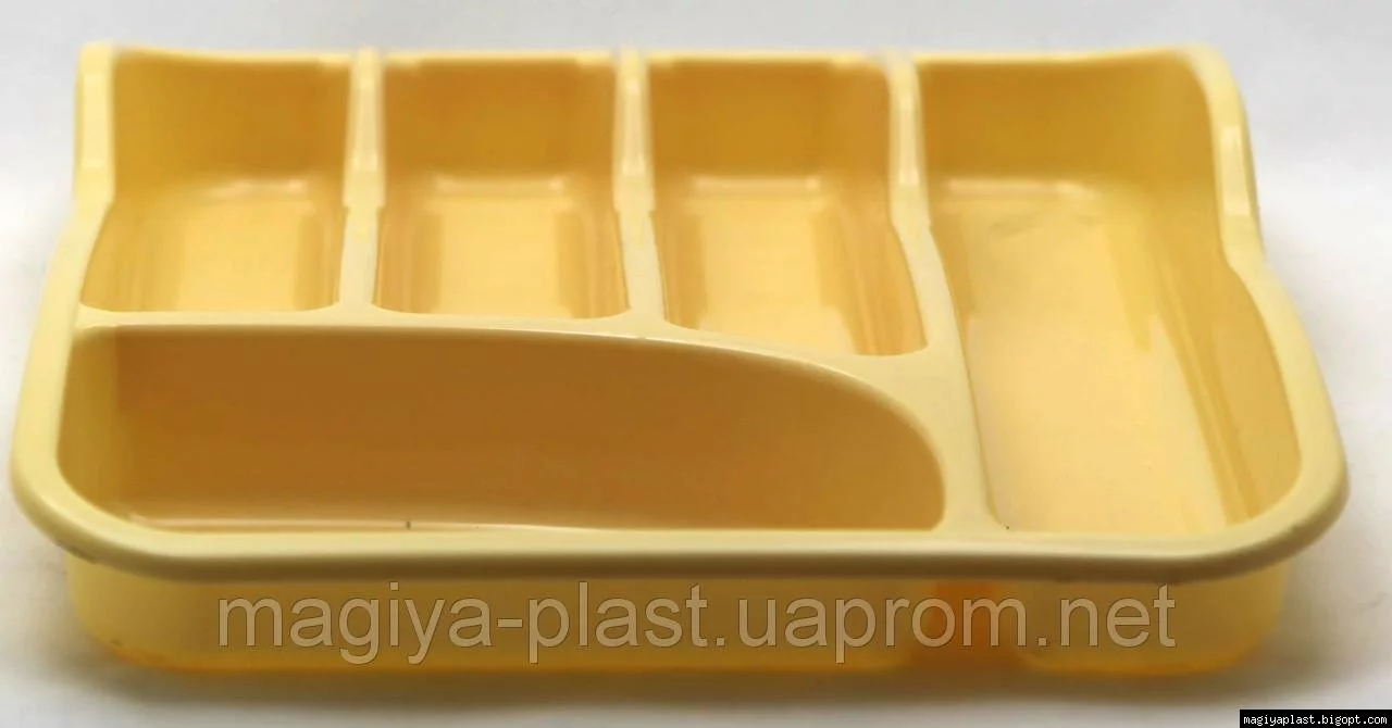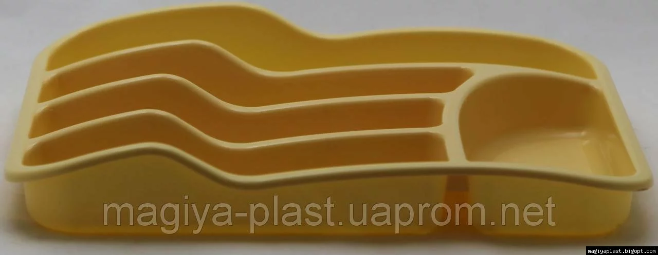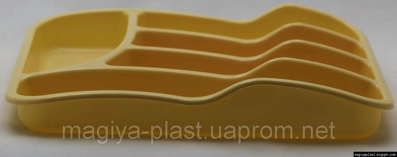 Пластиковый прямоугольный лоток-вкладыш в шуфлядку для столовых приборов изготовлен из смеси на базе полипропилена, и предназначен для использования в качестве кухонной утвари. Изделие подходит для эргономичного хранения столовых приборов в шуфлядке. Столовые приборы рекомендовано укладывать в ниши пластикового лотка-вкладыша в шуфлядку, с учётом их дизайна, в стопки, не превышающие высоту ниш. Рекомендовано для хранения чистых сухих столовых приборов.