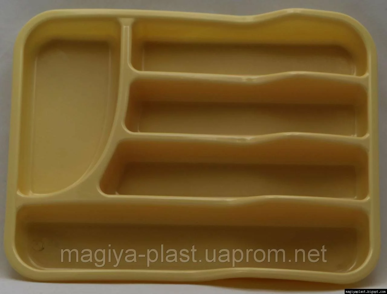 Пластиковый прямоугольный лоток-вкладыш в шуфлядку для столовых приборов 34см х 26см (бежевый цвет)