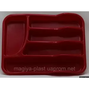 Пластиковый прямоугольный лоток-вкладыш в шуфлядку для столовых приборов 34см х 26см (красный цвет)