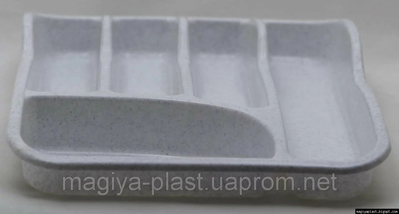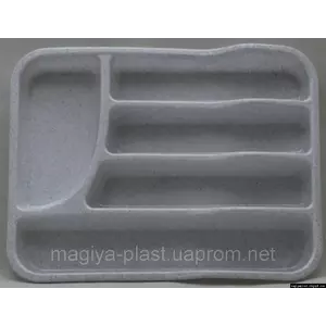 Пластиковый прямоугольный лоток-вкладыш в шуфлядку для столовых приборов изготовлен из смеси на базе полипропилена, и предназначен для использования в качестве кухонной утвари. Изделие подходит для эргономичного хранения столовых приборов в шуфлядке. Столовые приборы рекомендовано укладывать в ниши пластикового лотка-вкладыша в шуфлядку, с учётом их дизайна, в стопки, не превышающие высоту ниш. Рекомендовано для хранения чистых сухих столовых приборов.
