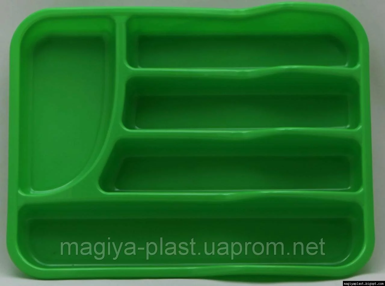 Пластиковый прямоугольный лоток-вкладыш в шуфлядку для столовых приборов 34см х 26см (салатовый цвет)